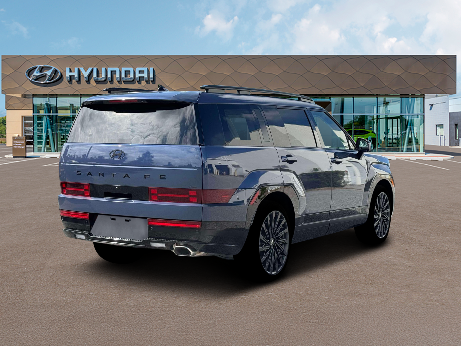 Atlantis Blue 2026 Hyundai Santa Fe Calligraphy AWD 8-Speed Automatic with SHIFTRONIC 2.5L I4 AWD, Black Leather.