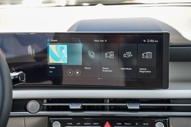 - Radio: AM/FM/HD Audio System -inc: 12.3" color touchscreen display, 6 speakers, SiriusXM satellite radio system (3-month trial subscription), wireless Apple CarPlay and Android Auto integration, controller OTA update capability, Blue Link connected car system and USB connectivity