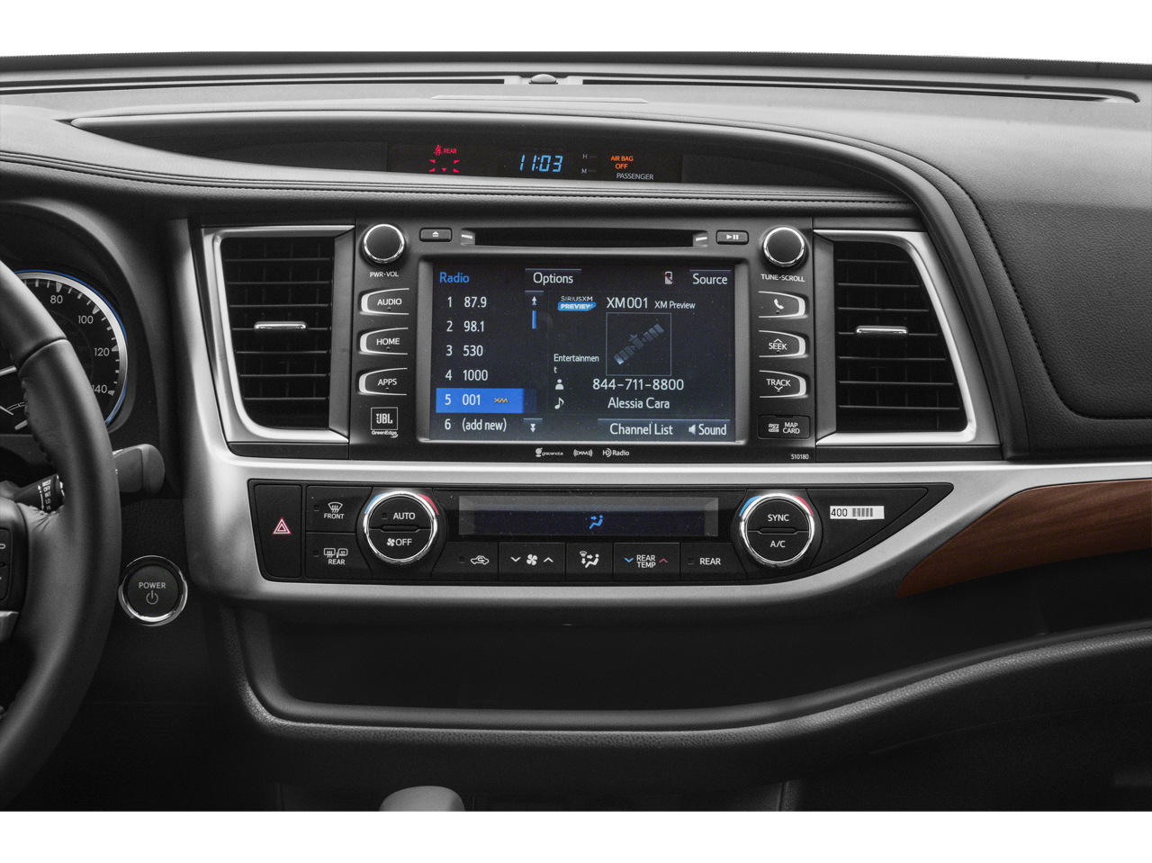 • Radio: Entune Premium JBL Audio w/Nav & App Suite -inc: the Entune Multimedia Bundle (8" high resolution touch-screen w/split screen display, AM/FM CD player, MP3/WMA playback capability, 12 JBL GreenEdge speakers, auxiliary audio jack, USB 2.0 port w/iPod connectivity and control, advanced voice recognition, hands-free phone capability, phone book access and music streaming via Bluetooth® wireless technology), Siri Eyes Free, Entune App Suite, Intelligent Touch controls, SiriusXM Satellite Radio w/3-month complimentary SiriusXM All Access trial, HD Radio, HD Radio predictive traffic and Doppler weather overlay, AM/FM cache radio, Gracenotes album cover art and integrated backup camera display w/dynamic gridlines