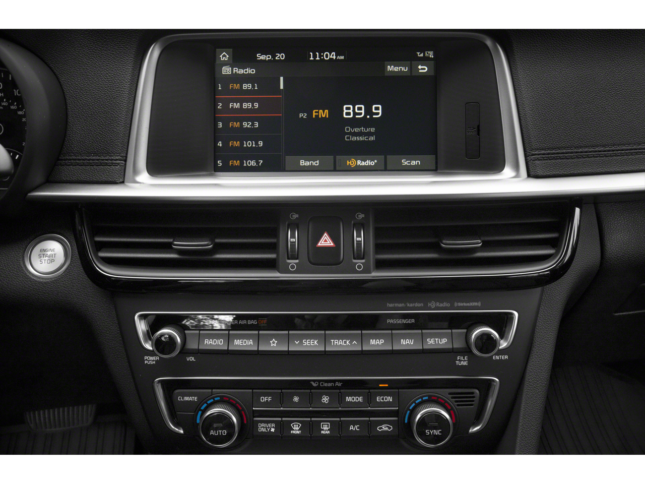 - Radio: AM/FM/MP3/SiriusXM Premium Audio System -inc: 630 watts, harman/kardon QuantumLogic premium surround sound, Clari-Fi, 10 speakers, Android Auto, Apple CarPlay smartphone integration, Bluetooth® wireless technology w/steering wheel controls, UVO Link w/navigation, 8" rear view monitor display w/dynamic parking guidance, wireless phone charger and USB/auxiliary input jacks