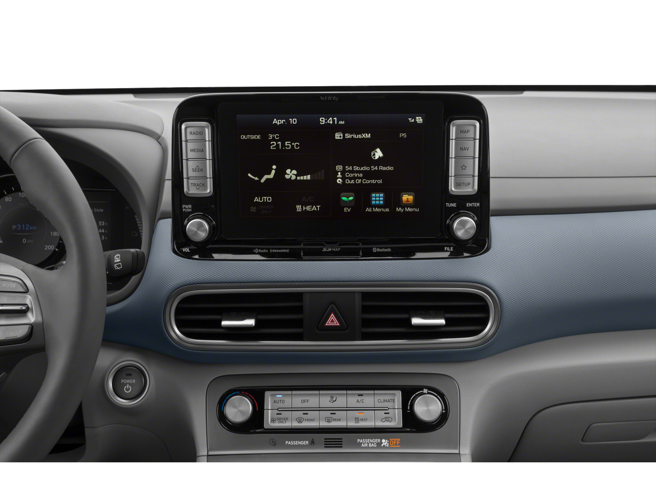 - Radio: AM/FM/HD Radio/MP3/SiriusXM Audio System -inc: 7" color touchscreen audio display, Apple CarPlay, Android Auto, aux input jack, Blue Link connected car system, Bluetooth® w/phonebook transfer, 1 amp front USB data/charge input, 2 amp front USB charge port, 6-speakers and wireless device charging,